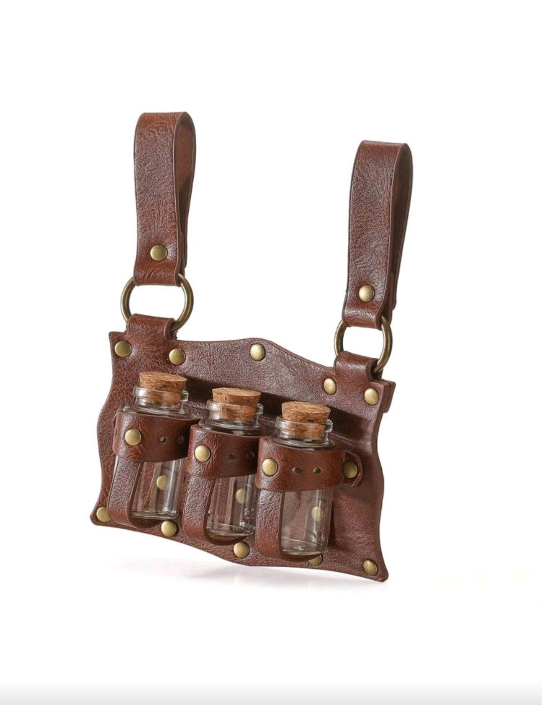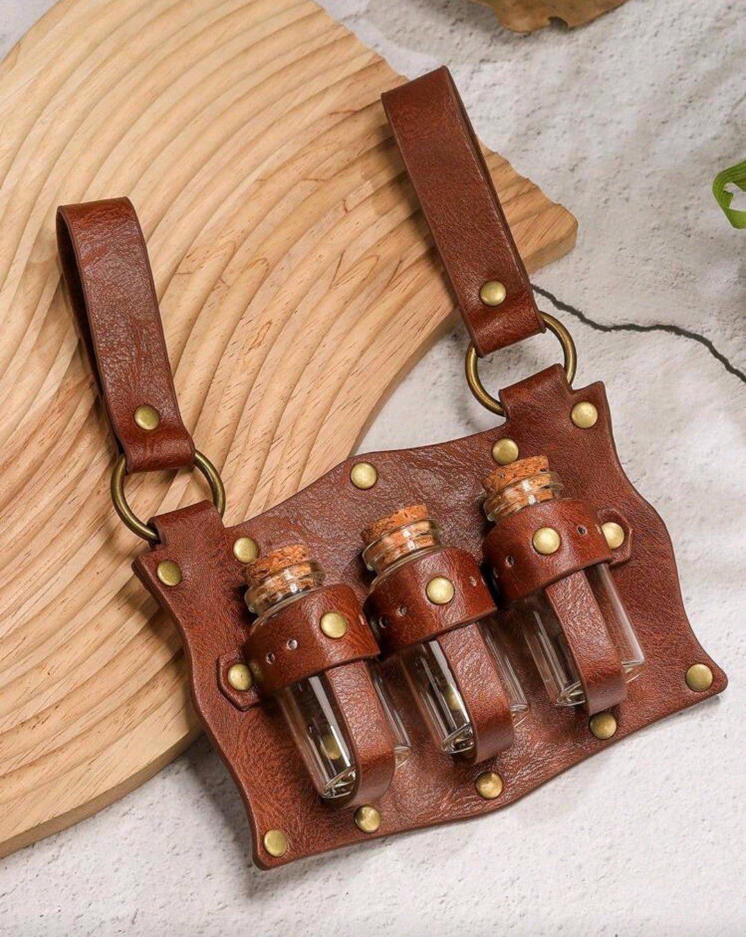 Dê uma mãozinha para suas habilidades de alquimia com esse suporte de poções em couro sintético! Com ele, você já tem os 3 frascos inclusos, facilitando suas aventuras pelo mundo mágico. O companheiro perfeito para aqueles que não levam a si mesmos tão a sério.